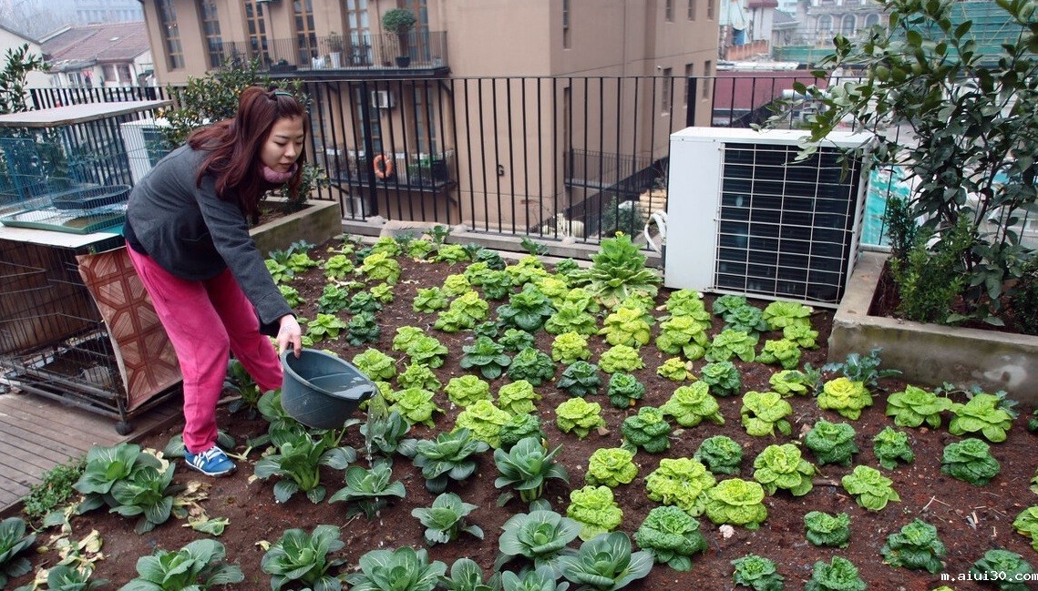 屋顶种植的蔬菜,阳光充足,通风透气性好,可以与田园蔬菜媲美。